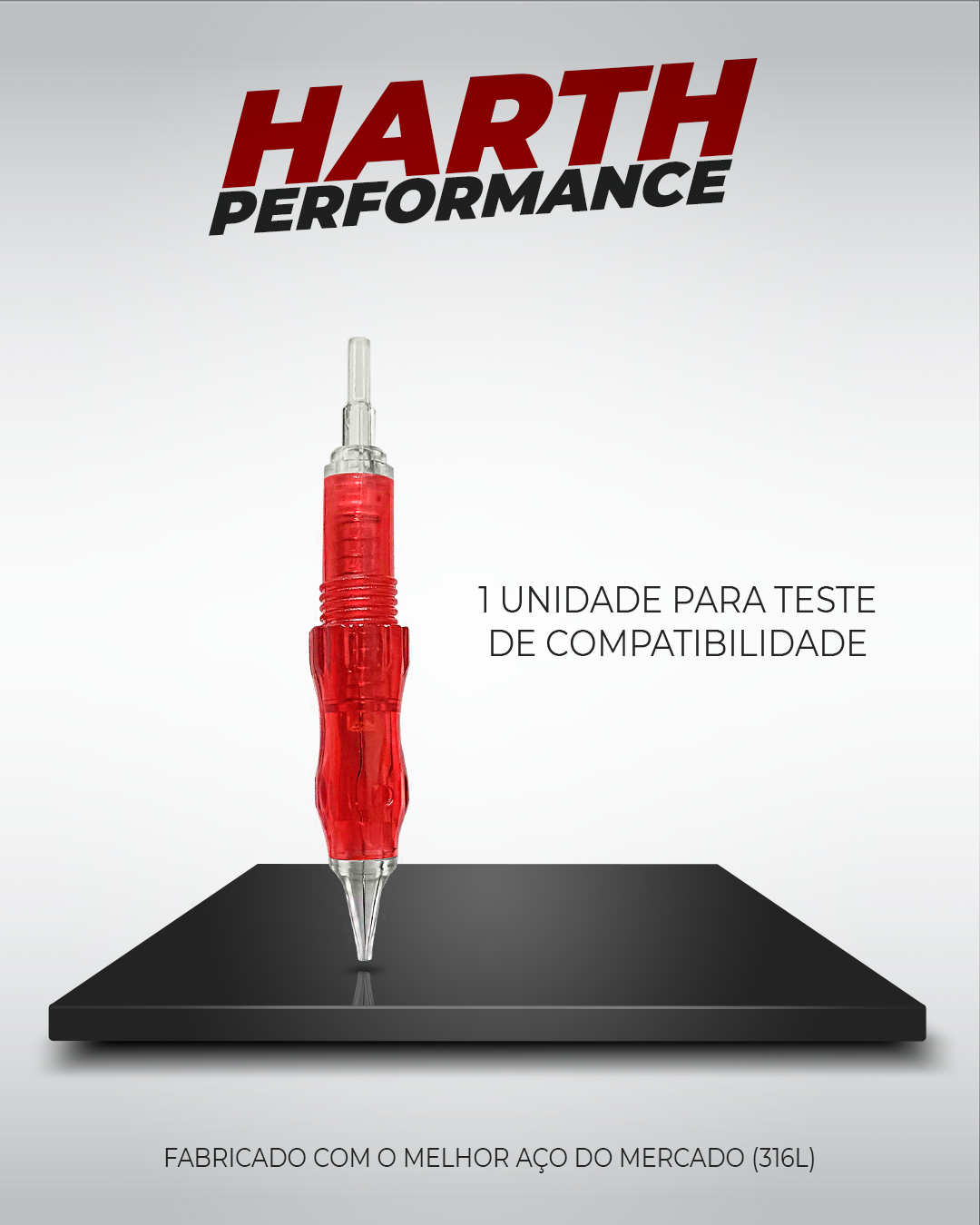 As agulhas Harth Innovation e Harth Performance são produzidas com aço cirúrgico 316L, o mesmo utilizado na medicina. Esse material confere resistência, durabilidade e estabilidade dimensional, garantindo que a espessura real da agulha seja exatamente a indicada.